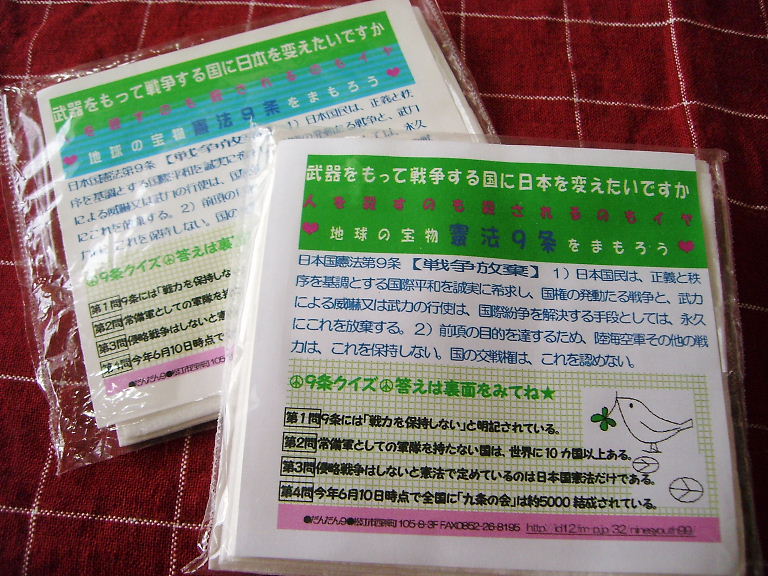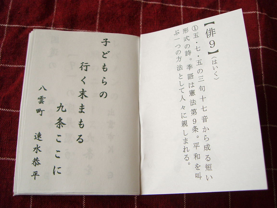 昨年9月9日の9条まつりで参加者のみなさんが応募してくださった俳9が