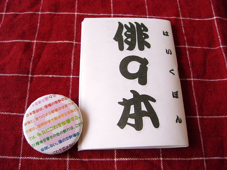 (となりは最初のころにつくった9条全文バッチ4センチです)